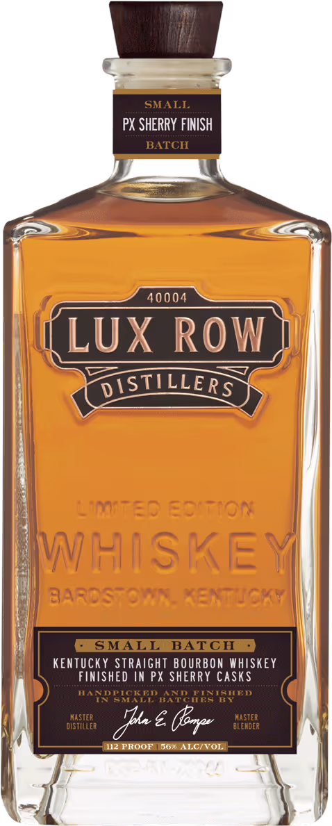 One of our newest and most unique offerings, Lux Row Small Batch PX Sherry Finish starts with handpicked, expertly blended barrels — all made from our rye bourbon recipe of 78% corn, 10% rye, and 12% malted barley. Once blended, the whiskey is introduced to a secondary cask for a precise PX Sherry cask finish. PX Sherry is an intensely rich and sweet wine made from overly ripened, sun-dried grapes. The finishing process, a vigilant resting, imparts an aromatic bouquet of dried figs and dates, decadent flavors of grape syrup and candied fruit, followed by hints of spice, roasted coffee, and dark chocolate.